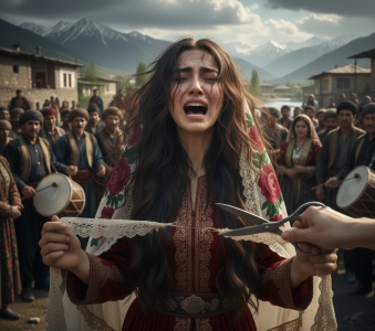 Kıskançlık, sessiz bir yılan gibi dolaşıyordu kalabalığın arasında. Birkaç genç kız, fısıldaşarak bakıyorlardı Herat’a. “Bu kadar güzel olmaya hakkı yok,” dedi içlerinden biri. Ve o an, bir el uzandı; hızlı, acımasız. Makas parıltısı göründü bir an, sonra yazma ikiye bölündü. Herat’ın başı açıldı ortada. Kalabalık dondu kaldı.