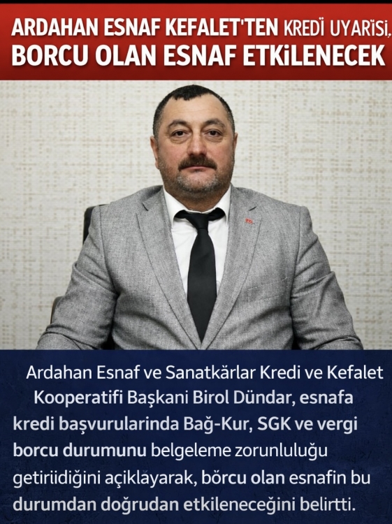 Başkan Dündar, Halkbankası’ndan kooperatiflerine iletilen yazıya göre, kredi başvurularında Bağ-Kur, SGK ve vergi borcu bulunmadığına ya da borçların yapılandırıldığına dair belge isteneceğini açıkladı. Yeni uygulamanın, söz konusu kurumlara yüksek borcu bulunan esnafın kredi başvurusunu doğrudan etkileyeceğini belirtti.